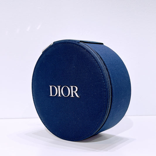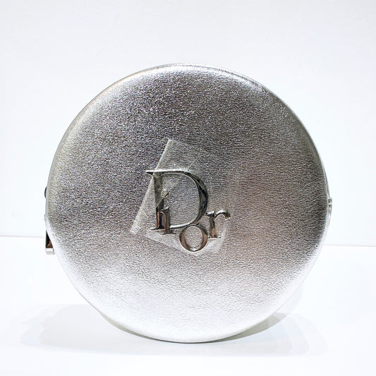 Dior Silver Round Leather Pouch Cosmetic Case Limited Novelty Boxed Authentic