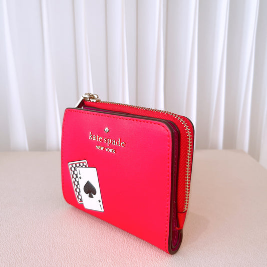 Kate Spade Lucky Draw Small L-zip Bifold Wallet Red Leather