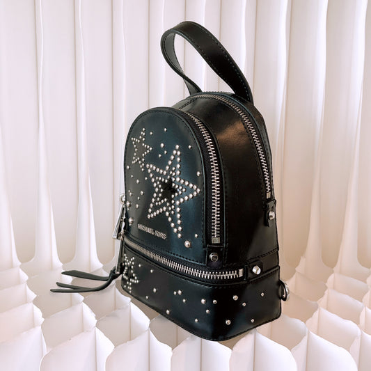 Michael Kors Black Rhea Studded Star Mini Messenger Zip Backpack Bag