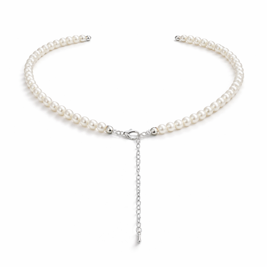 Bow-shaped buckle White pearl necklace