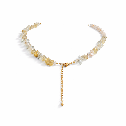 Multi-coloured gemstone beaded gold necklace