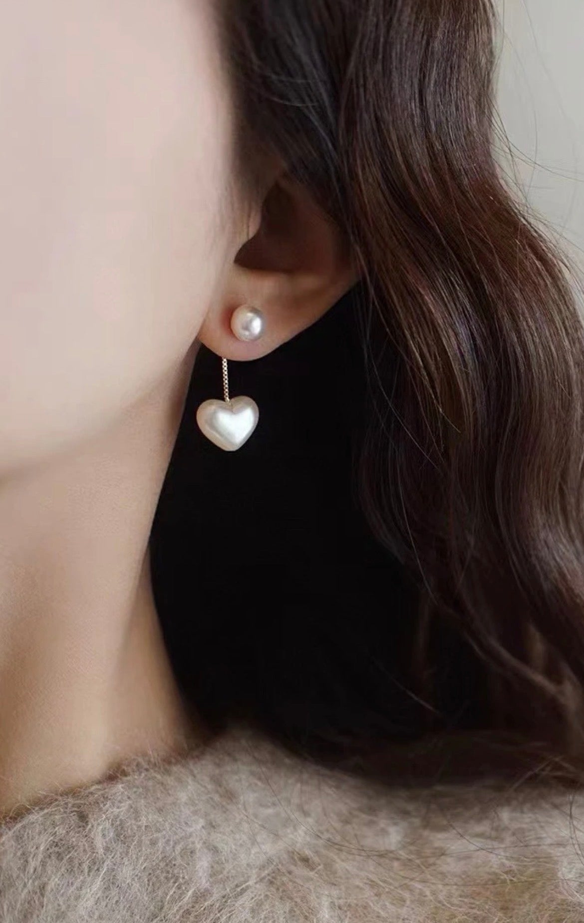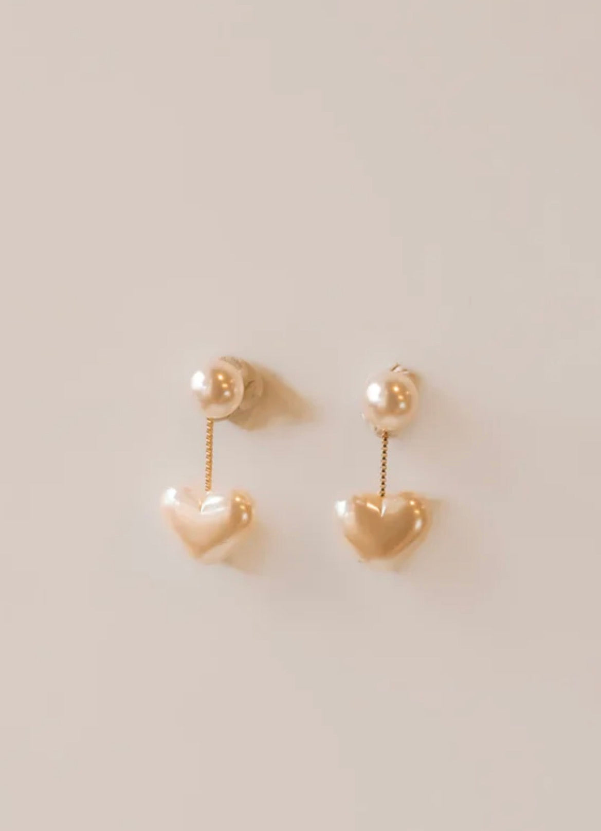 Illuminate your ears with the "Blush Blossom" earrings, featuring a pinkish heart shape made of pearls. A gentle reminder to wear your heart on your ears and let love blossom.