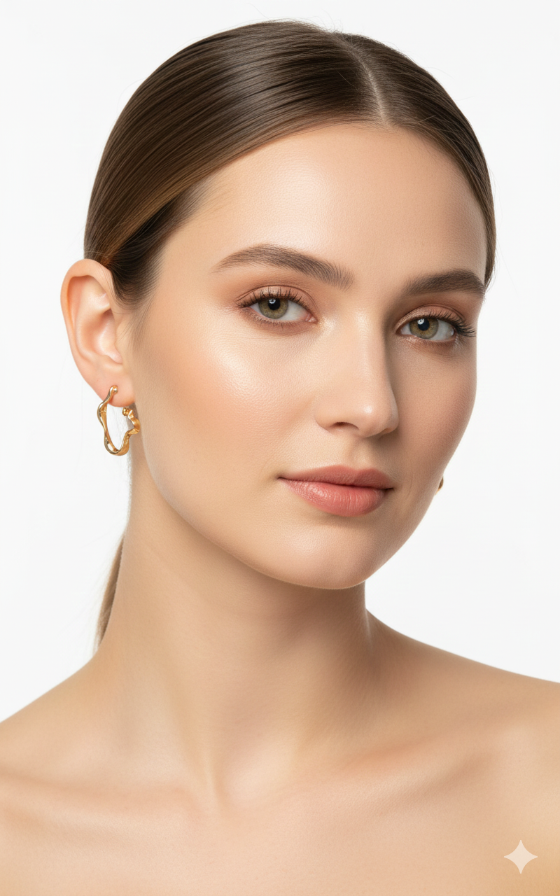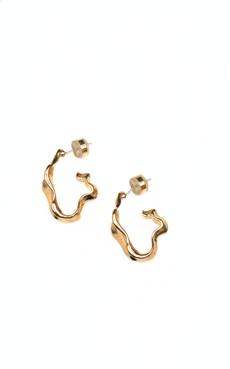 Adorn yourself with the "Curves of Elegance" earrings, featuring a gold curvy design. Each curve represents the fluidity of life, reminding you to embrace elegance in every moment.