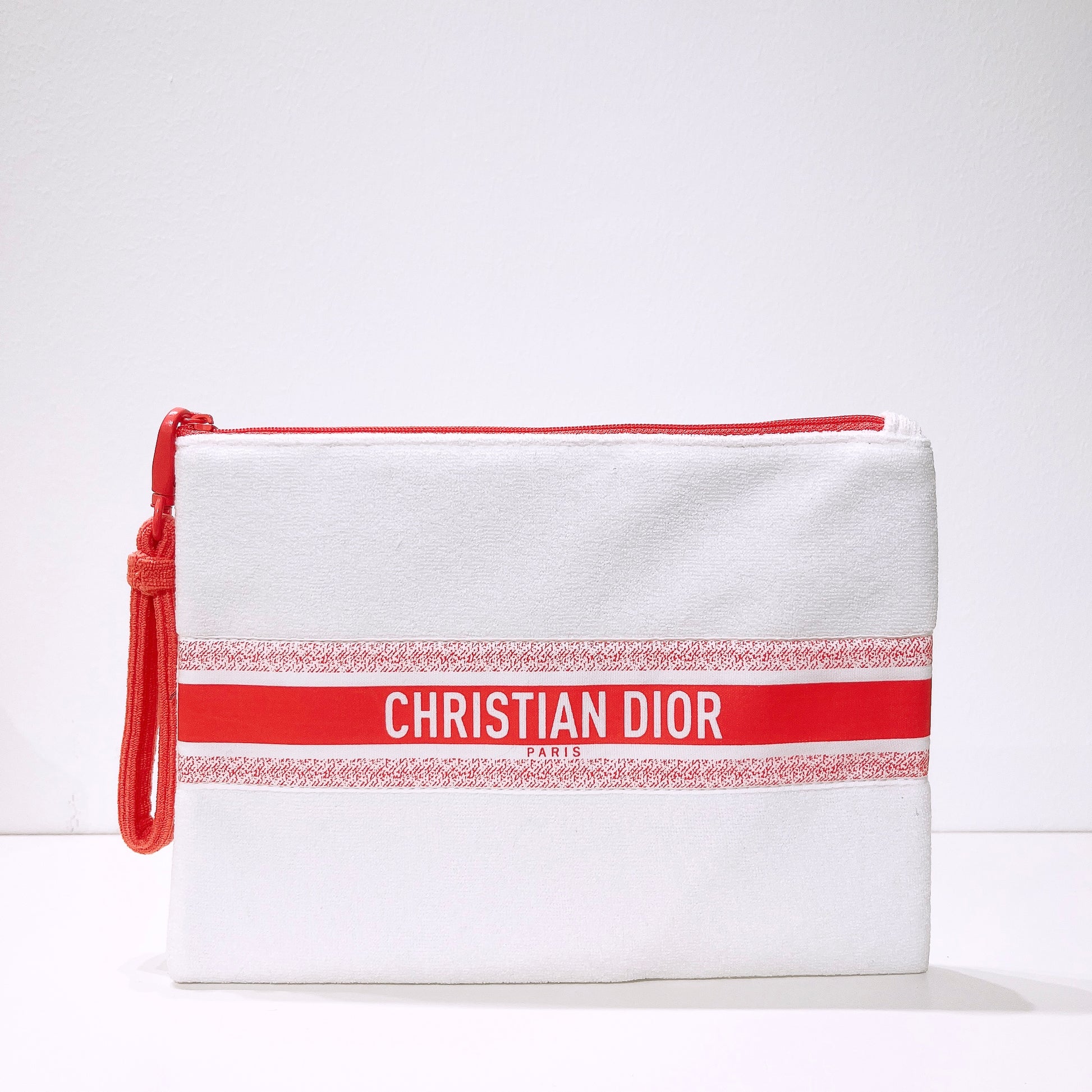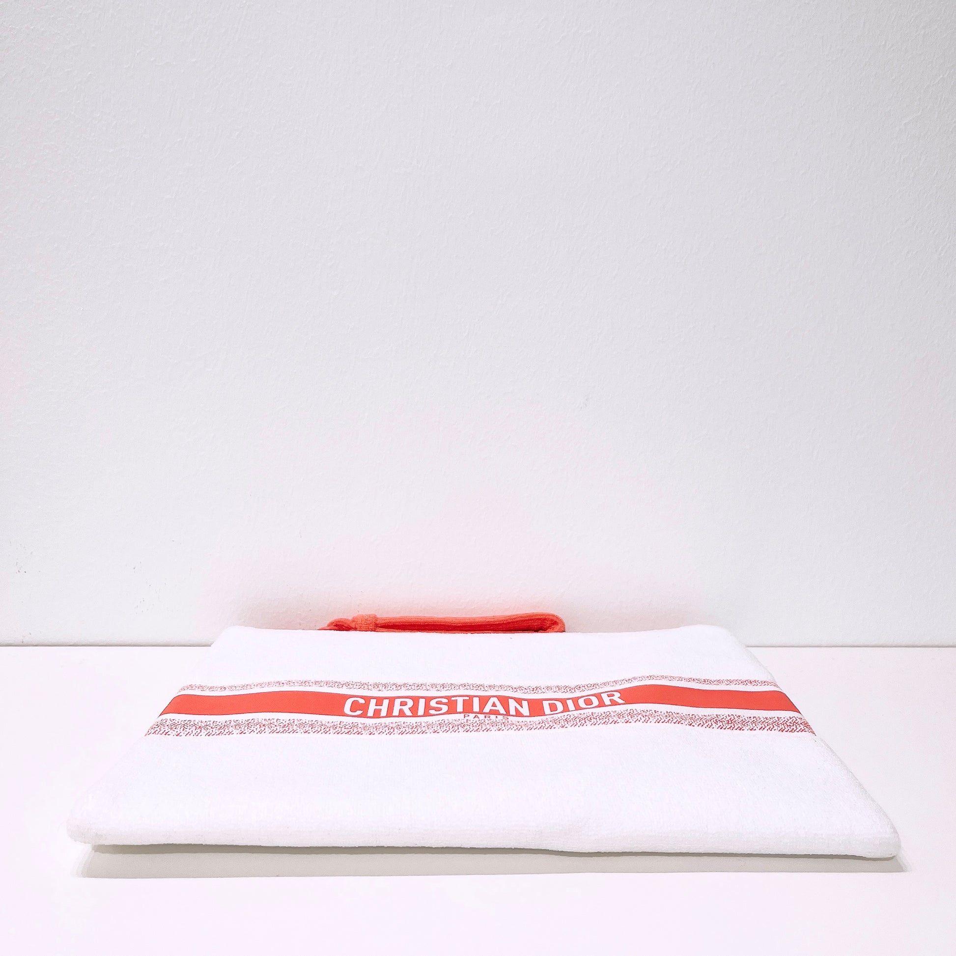 Dior Dioriviera White & Coral Terry Cloth Beach Pouch