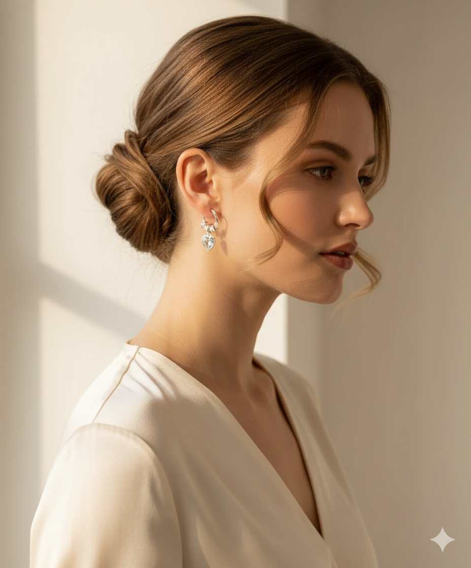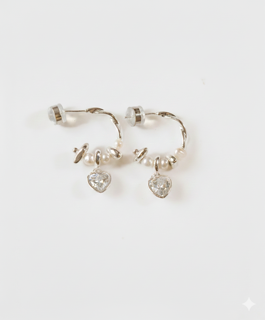 Adorn your ears with the "Heartfelt Elements" earrings, featuring light silver elements with a mini heart shape. Let them symbolize the lightness of your heart and the intricate elements that make you unique.