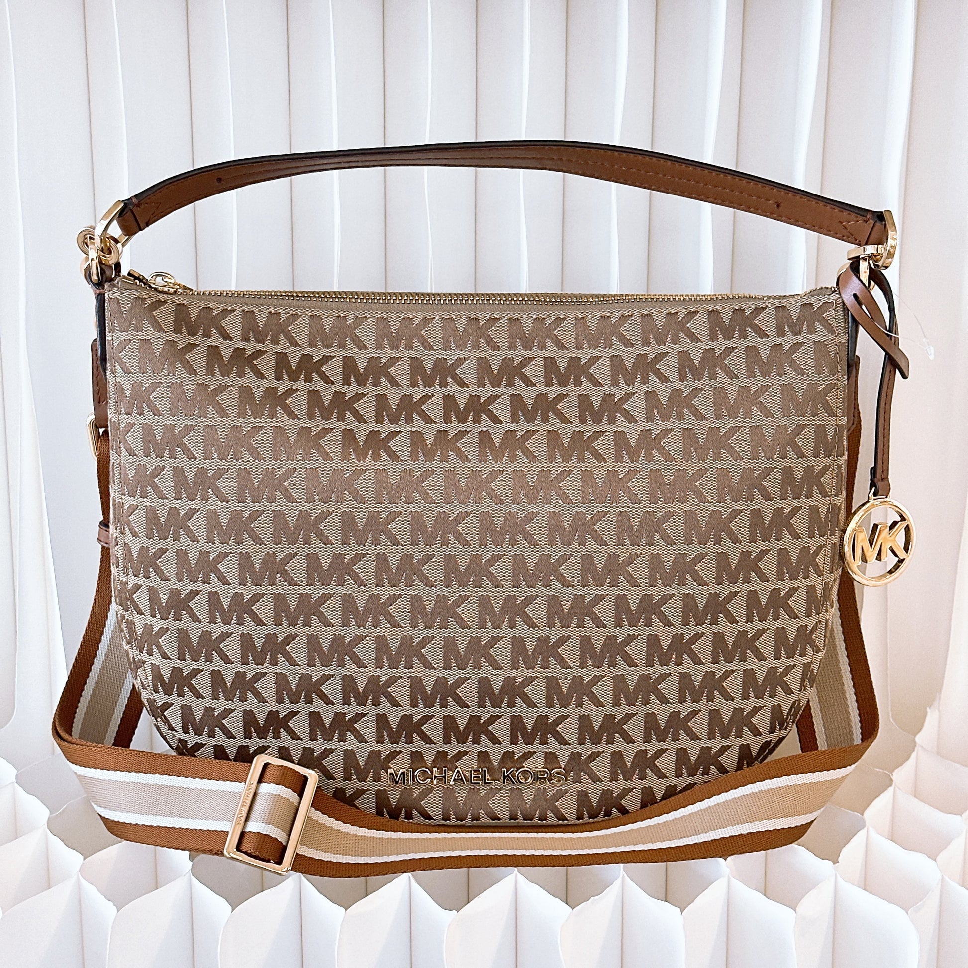 MICHAEL KORS BEDFORD CRESCENT MK SIGNATURE BROWN SHOULDER