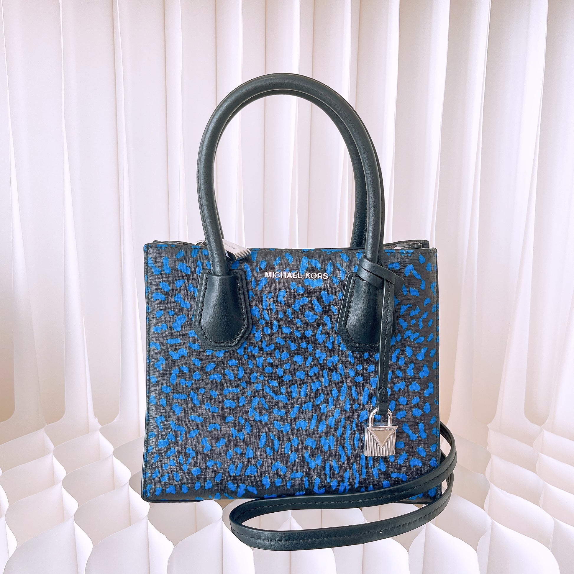 This MK tote for women flaunts an eye-catching animal print in hues of blue and black. Designed for the fashion-forward woman, it offers a spacious interior lined with soft fabric, providing ample space for essentials. The adjustable shoulder strap adds versatility, allowing you to transition effortlessly from day to night.