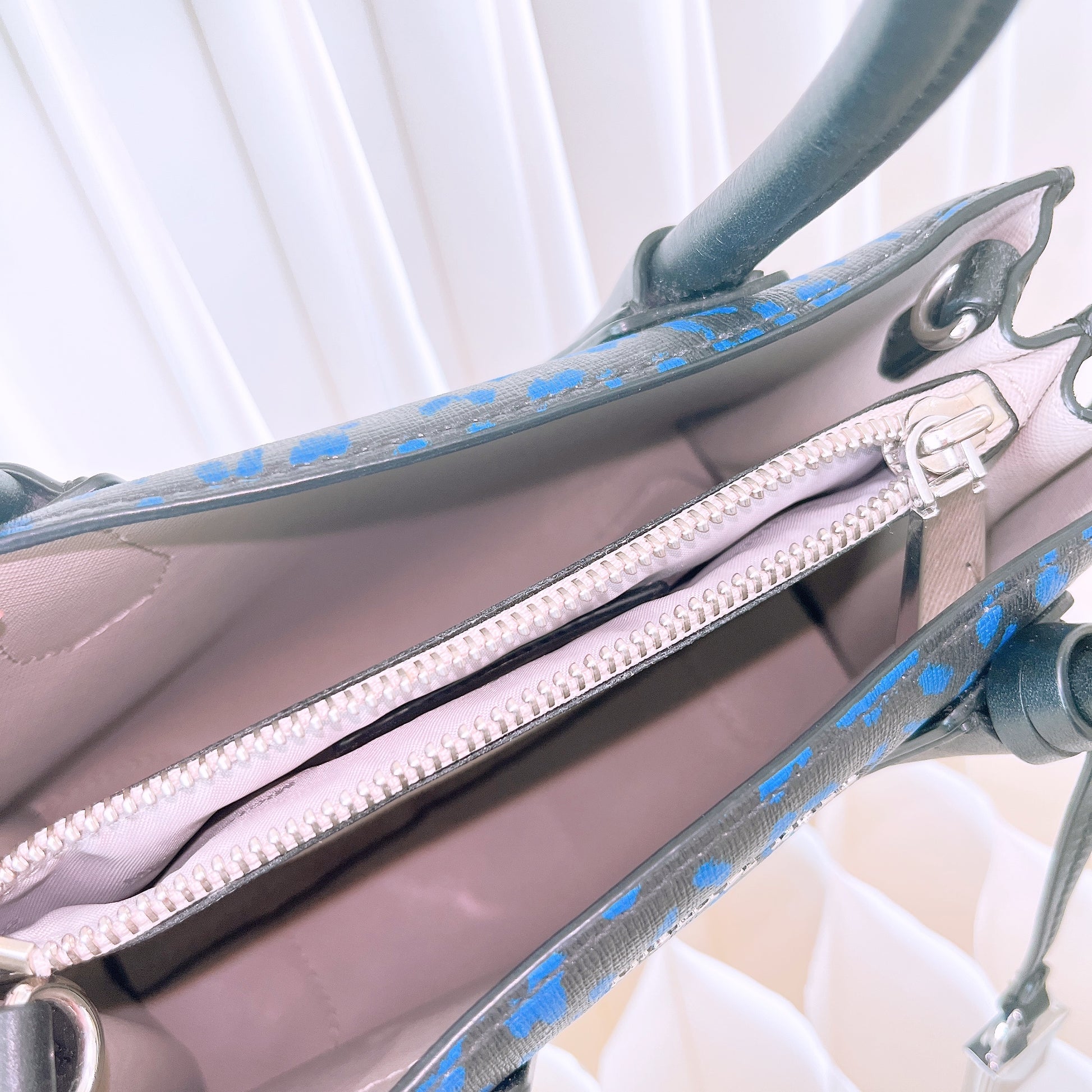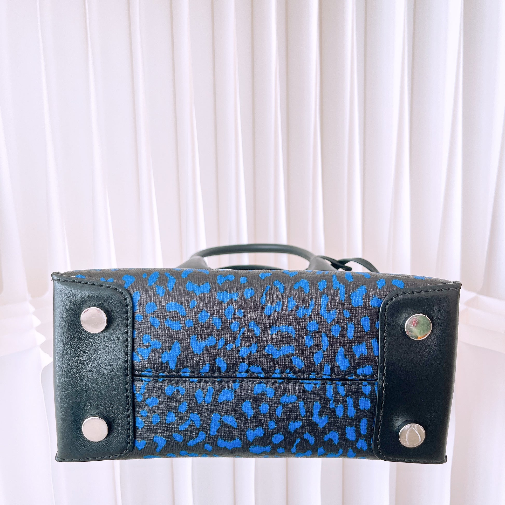 Michael Kors Black/Blue Leather and Coated Canvas Animal Print Mercer Tote