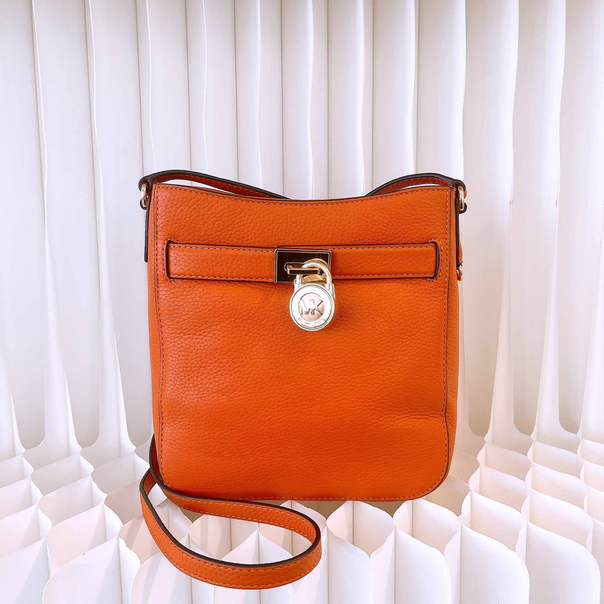 Michael Kors Hamilton Crossbody Pebble Leather In Orange